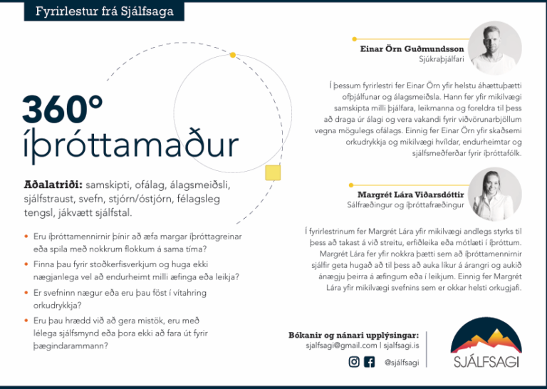 Fimmtudaginn 12. mars munu þau Einar Örn Guðmundsson og Margrét Lára Viðarsdóttir vera með fyrirlestur frá Sjálfsaga. Fyrirlesturinn fer fram í veislusalnum í Virkinu kl 18:30 og er opinn fyrir 3. – 5. flokk í handbolta. Foreldrar eru velkomnir!